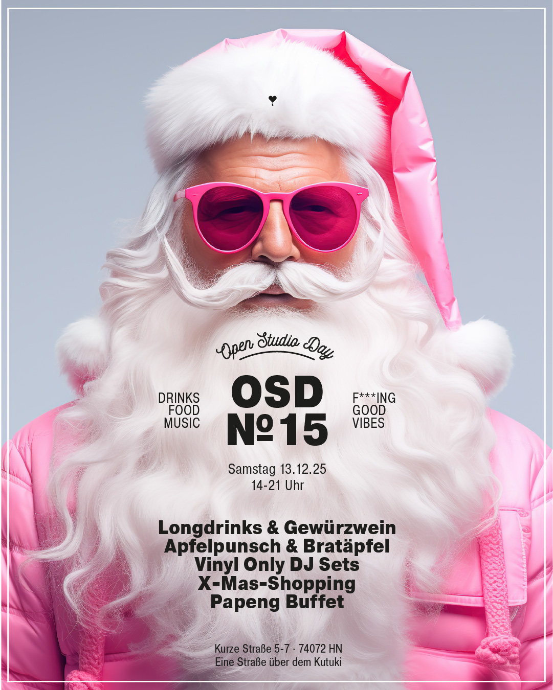 It’s that time again – Papeng XMAS Edition! 🎅✨ Am 13. Dezember 2025 feiern wir den Open Studio Day No. 15 in Heilbronn. Freut euch auf Apfelpunsch, Gewürzwein, Salz, Sirup & Soul, Papa Pengs Gin Tonic, Vinyl DJ Sets und jede Menge gute Vibes. Warm, wild, lecker, laut – save the date & spread the vibe! 14–21 Uhr · Kurze Straße 5–7 · Enjoy the tasty ride – eure Herbs Crew